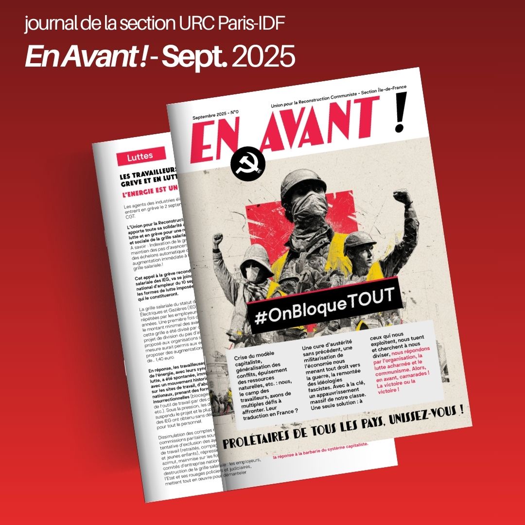 Crise du modĂšle capitaliste, gĂ©nĂ©ralisation des conflits, Ă©puisement des ressources naturelles, etc. : nous, le camp des travailleurs, avons de multiples dĂ©fis Ă affronter. Leur traduction en France ? Une cure dâaustĂ©ritĂ© sans prĂ©cĂ©dent, une militarisation de lâĂ©conomie nous menant tout droit vers la guerre, la remontĂ©e des idĂ©ologies fascistes. Avec Ă la clĂ©, un appauvrissement massif de notre classe. Une seule solution : Ă ceux qui nous exploitent, nous tuent et cherchent Ă nous diviser, nous rĂ©pondons par lâorganisation, la lutte acharnĂ©e et le communisme. Alors, en avant, camarades ! La victoire ou la victoire !
